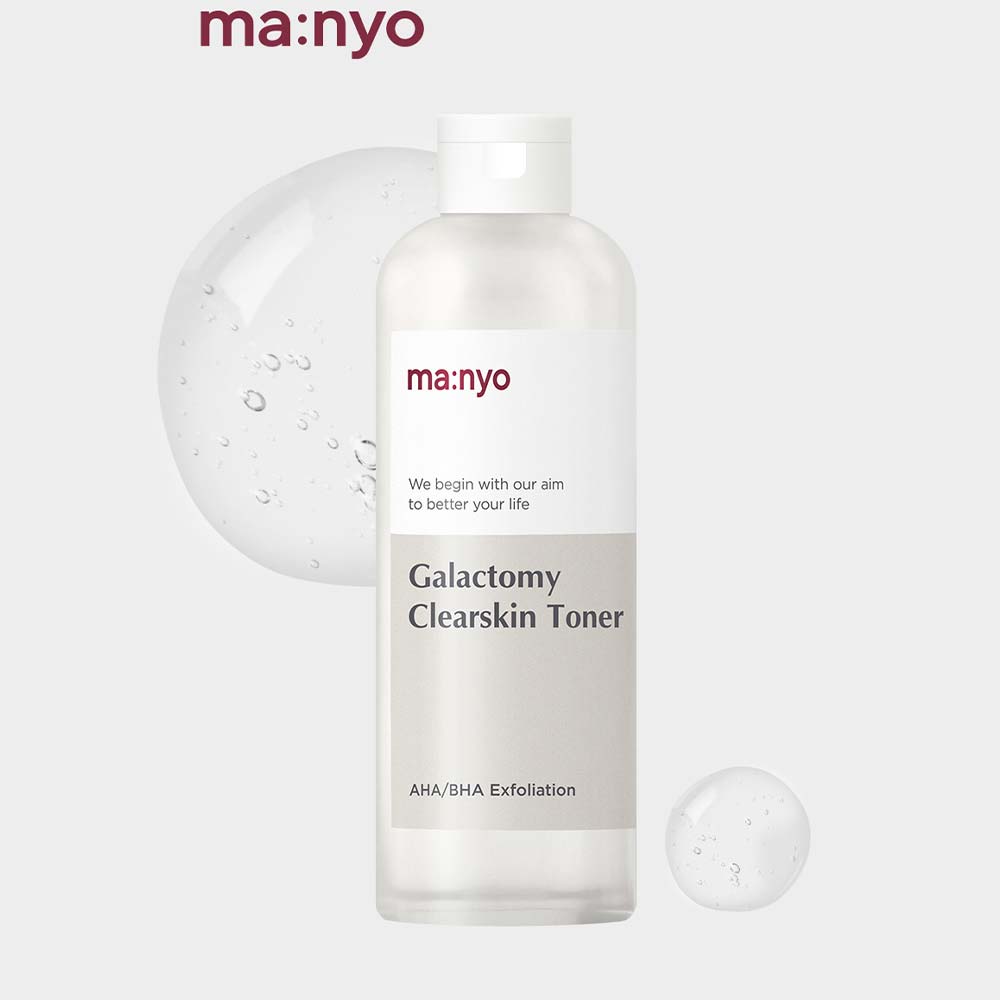 Το Manyo Factory Galactomy Clearskin Toner καθαρίζει επιμελώς την επιφανειακή στιβάδα του δέρματος από υπολείμματα καλλυντικών και άλλες ακαθαρσίες, αφαιρεί το υπερβολικό σμήγμα, βοηθά στον καθαρισμό των πόρων και απολεπίζει την κεράτινη στοιβάδα της επιδερμίδας. Βοηθά, ακόμη στην εξάλειψη του ξεφλουδίσματος, ανακουφίζει από ερεθισμούς και ερυθρότητα, εξομαλύνει τον τόνο του δέρματος και επιταχύνει τις διαδικασίες αναγέννησης και επούλωσης της φλεγμονής. Βοηθά στην καταπολέμηση της μελάγχρωσης και φωτίζει απαλά τον συνολικό τόνο του δέρματος.Το σύμπλεγμα οξέων (LHA + PHA) ενεργοποιεί τις διαδικασίες ανανέωσης, απομακρύνει τα νεκρά κύτταρα της επιδερμίδας και γυαλίζει την επιφάνεια της επιδερμίδας, κάνοντάς την απαλή και λεία. Έχει ευεργετική επίδραση στο δέρμα, διαλύει τα λιπαρά βύσματα και προάγει τη στένωση των πόρων, επιταχύνει τη διαδικασία επούλωσης της φλεγμονής, προλαμβάνει την ακμή, εξομαλύνει τον συνολικό τόνο του δέρματος ενώ φωτίζει. Λειτουργεί ως αγωγός και επιτρέπει σε όλα τα επόμενα προϊόντα περιποίησης να διεισδύσουν βαθύτερα στην επιδερμίδα και να είναι έτσι περισσότερο αποτελεσματικά ενώ αυξάνει την ικανότητα απορρόφησης του δέρματος. Το προϊόν δεν περιέχει αλκοόλ.